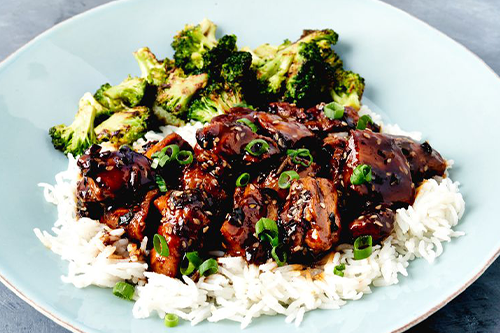 Return chicken to the skillet and cook, stirring occasionally, until sauce is thickened slightly and chicken is coated in the sauce and cooked through. Serve over rice and sprinkled with reserved green onions.