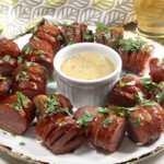 Add bacon to the same skillet; cook and stir until lightly browned. Transfer bacon to the bowl with browned beef. Drain the skillet and return it to the heat. Pour 1 cup of reserved marinade into the skillet; bring to a boil while scraping the browned bits of food off the bottom of the pan with a wooden spoon. Return this liquid to the reserved marinade.
